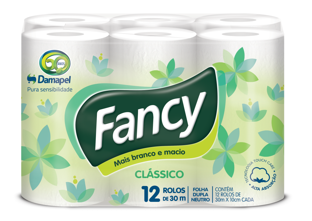 Papel Higienico Fancy Folha Dupla Fd C/ 6X12UN Disponível em rolos de 30 metros